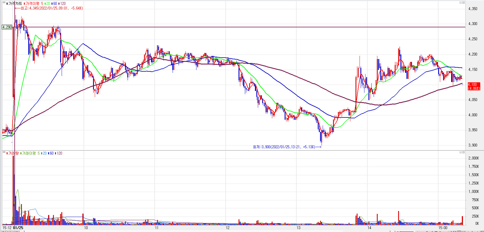 타겟종목: 1000만 거래량 장대양봉 다음날 거래량이 1/4 이하로 감소한 종목