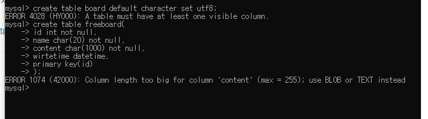 mysql로 테이블 만드는 방법을 알고 나니 굉장히 설렘.