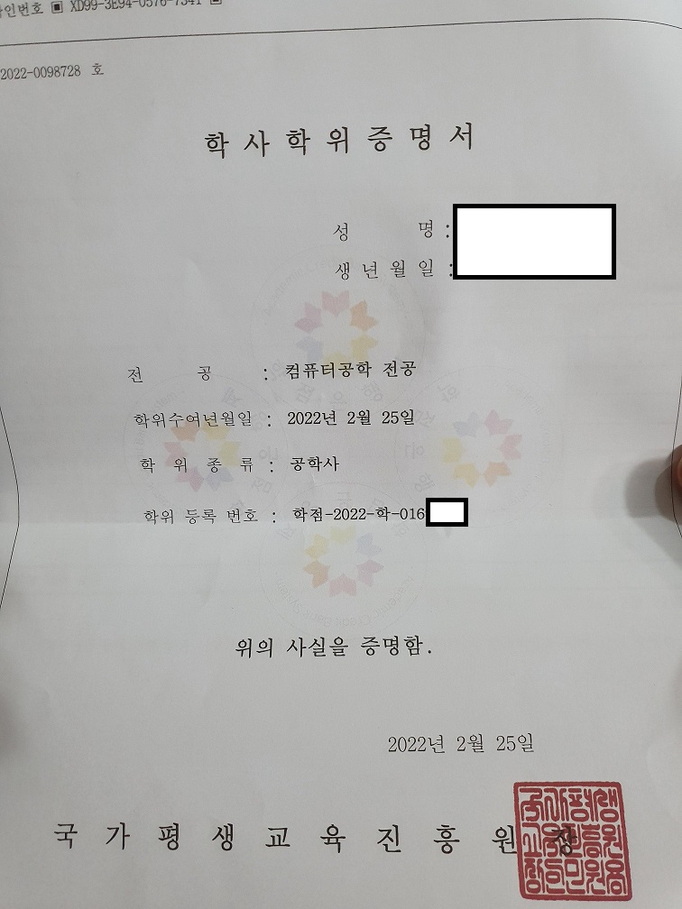 지난 2021년 8월 말 학점은행제를 통해 학사학위를 취득하고자 마음먹었던 것이 엊그제 같은데