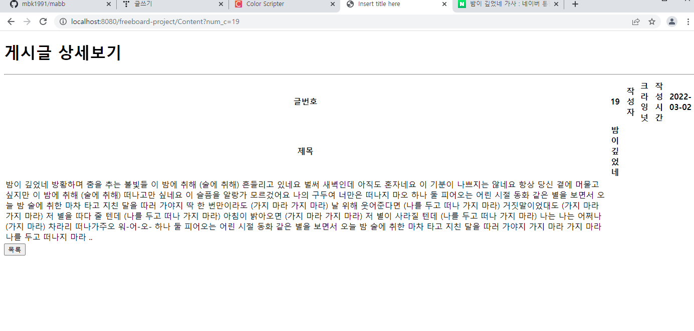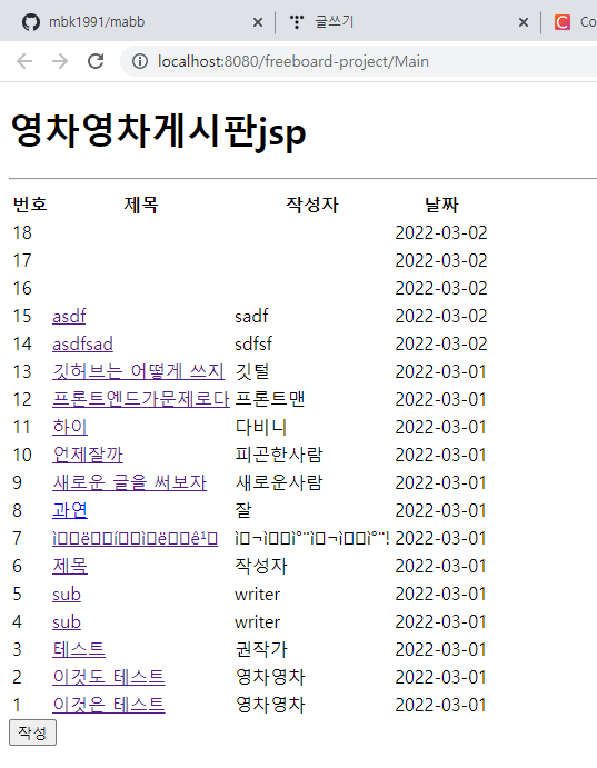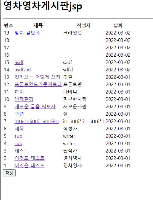 | [프로그래밍] 게시판 만들기 도전,220301, 배운 것을 토대로 연습 (0) | 2022.03.01 |