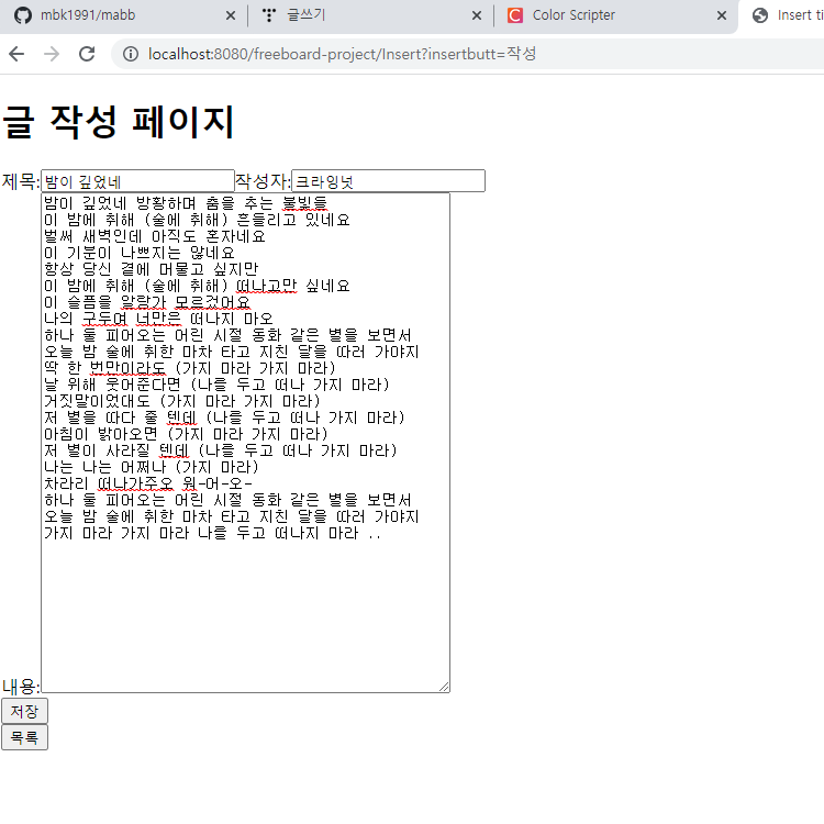 제목:<input name = "sub" type = "text">작성자:<input name = "writer" type = "text"><br>