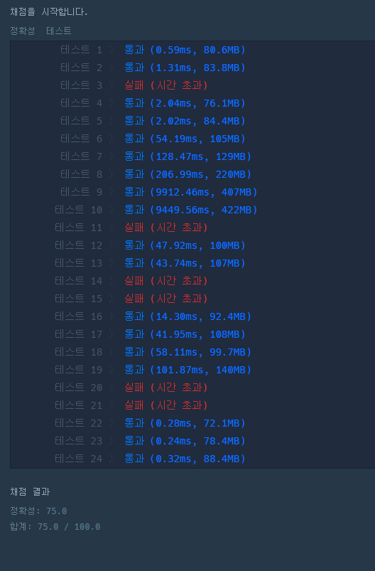 주인 닮아서 코드도 느린지 시간초과로 실패하였다.