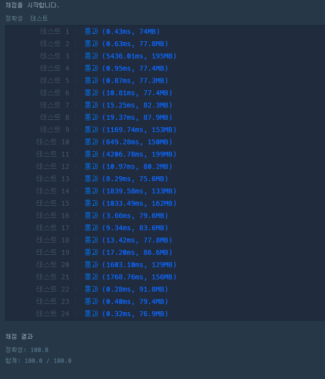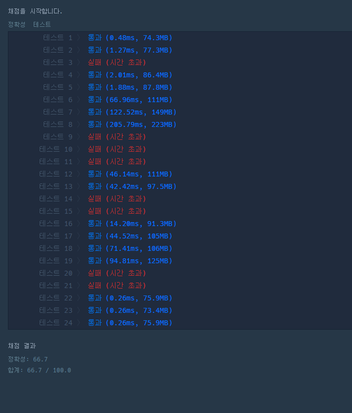 프로그래머스에서는 answer를 구하기까지의 시간을 확인할 수 있으니