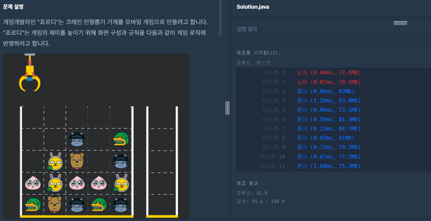 public int solution(int[][] board, int[] moves) {