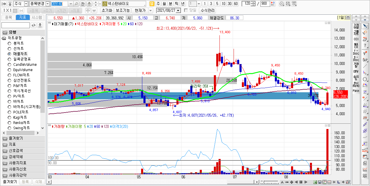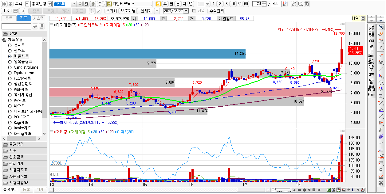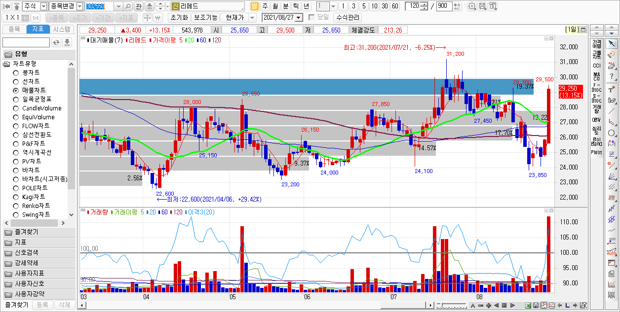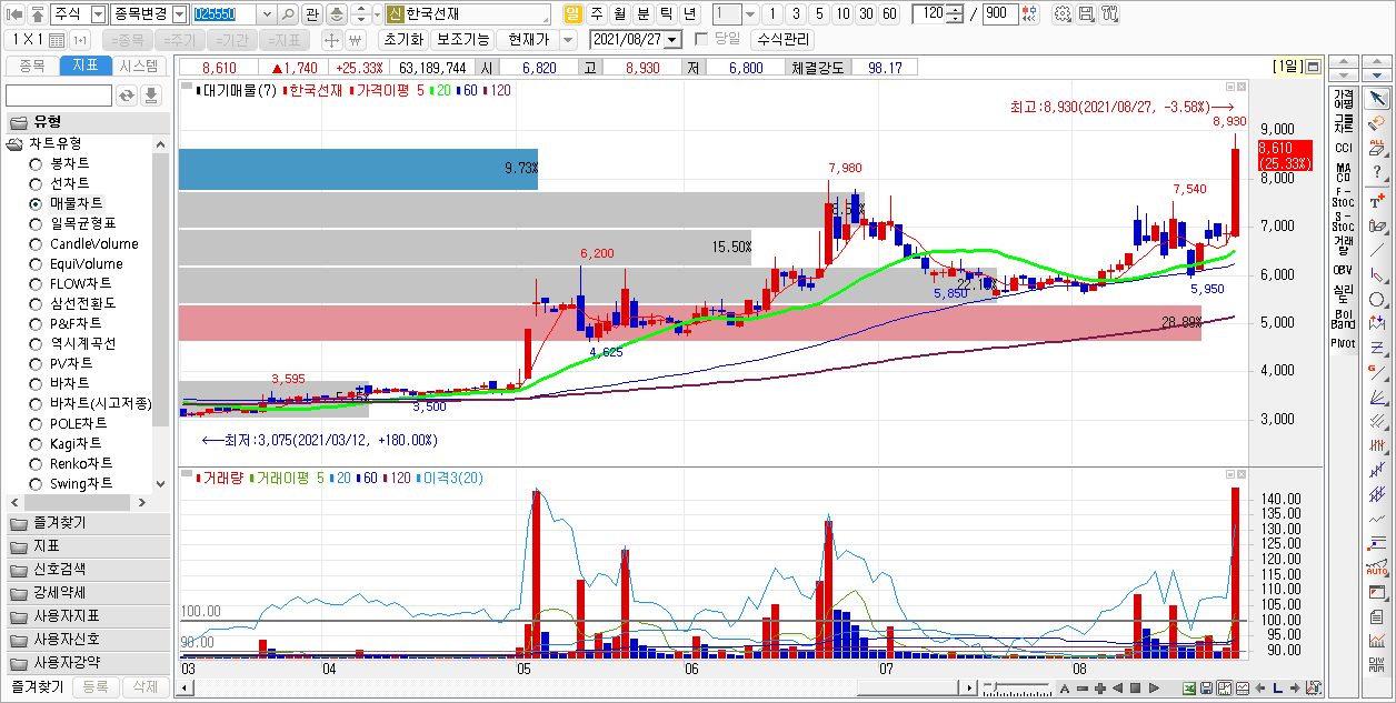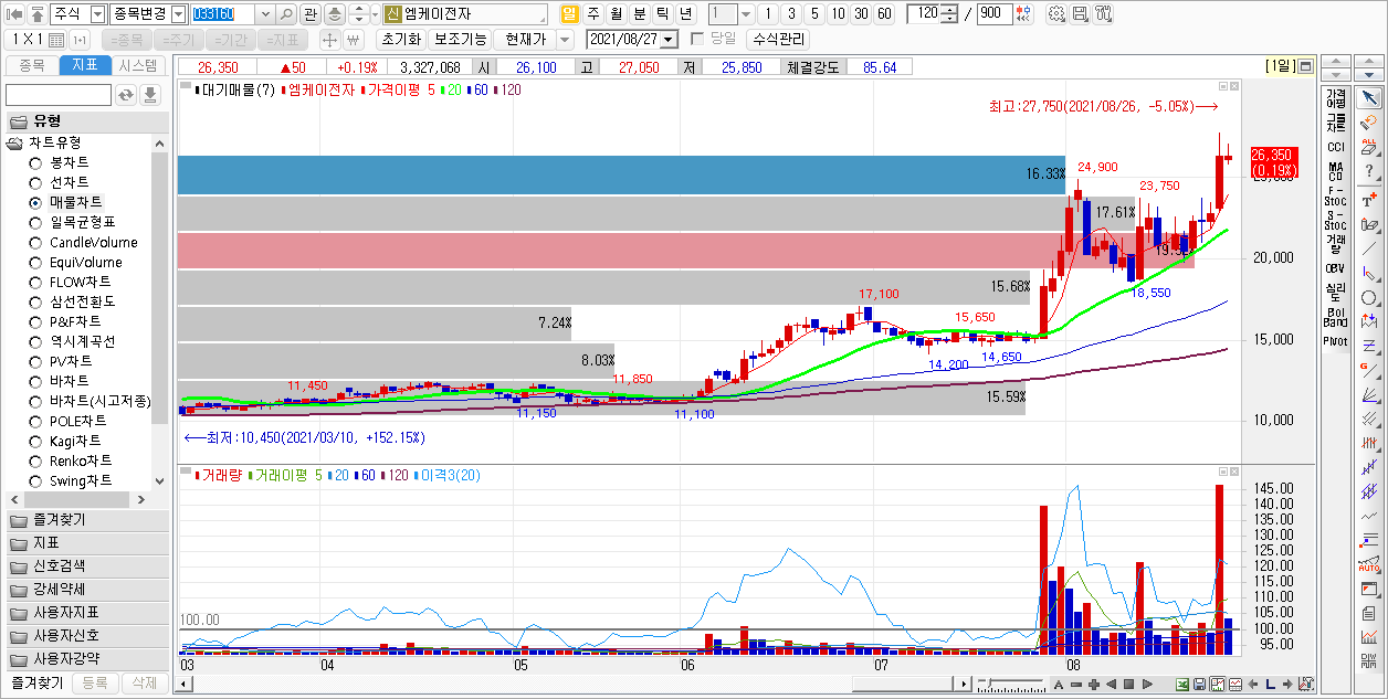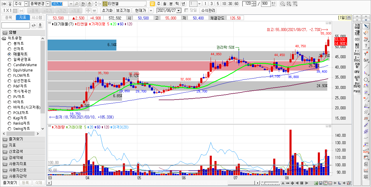 해당 포스팅은 2봉 전 종가 대비 15% 이상 상승 종목의 일봉 차트를 비교, 분석하여