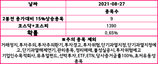 | [주식] 2봉전 종가 대비 15% 이상 상승종목 ① (0) | 2021.08.25 |