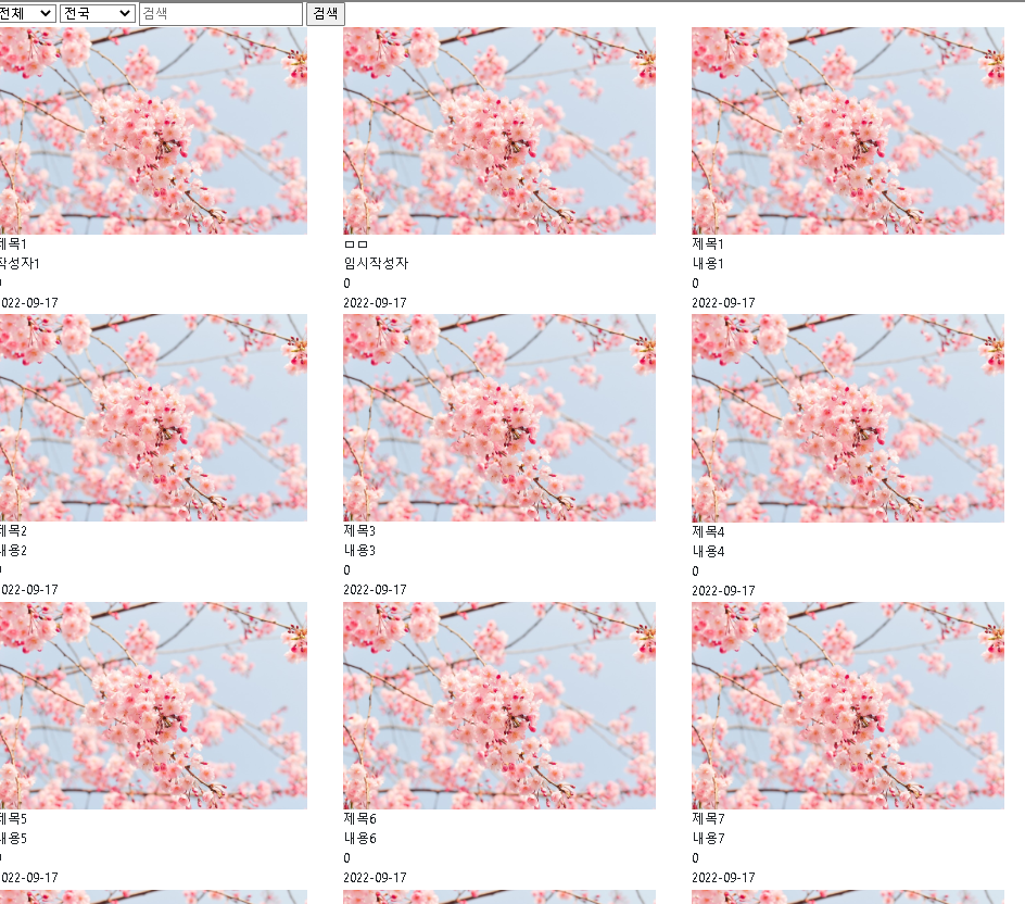 학원에서 배운 것을 토대로 이런 형태의 게시판 목록을 만들어보고자 함.
