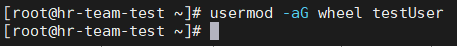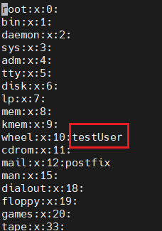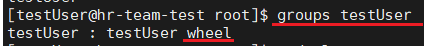 testUser가 wheel 그룹에 추가된 모습 : groups testUser