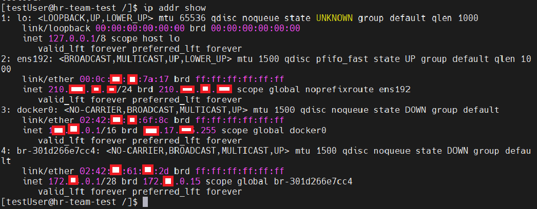 link/ether: link (데이터링크 계층, L2) 가 Ethernet이라는 의미, 옆의 주소는 NIC의 MAC주소, brd는 브로드캐스트 주소를 의미