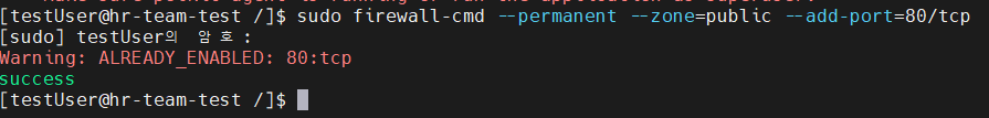 방화벽 포트 개방 명령어 : firewall-cmd --permanent --zone=public --add-port=80/tcp;