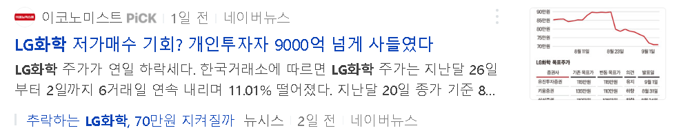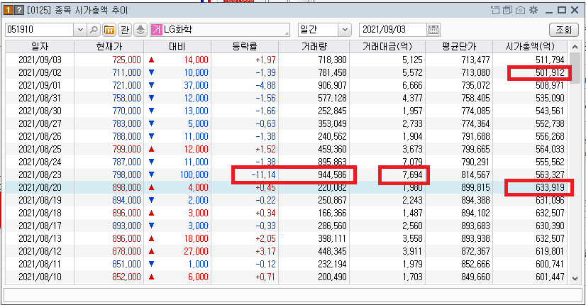 이상 LG화학의 급락으로 시가총액이 급 증발하는 상황을 보고