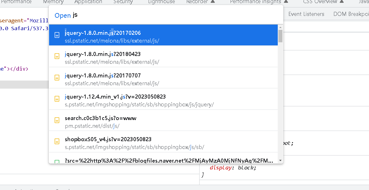 ex) js라고 검색하면 해당 페이지의 js 파일을 확인할 수 있어 편리하다.