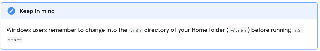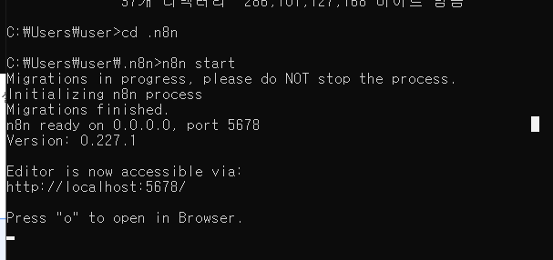 n8n폴더로 CD한 후에 start n8n을 하라는 의미