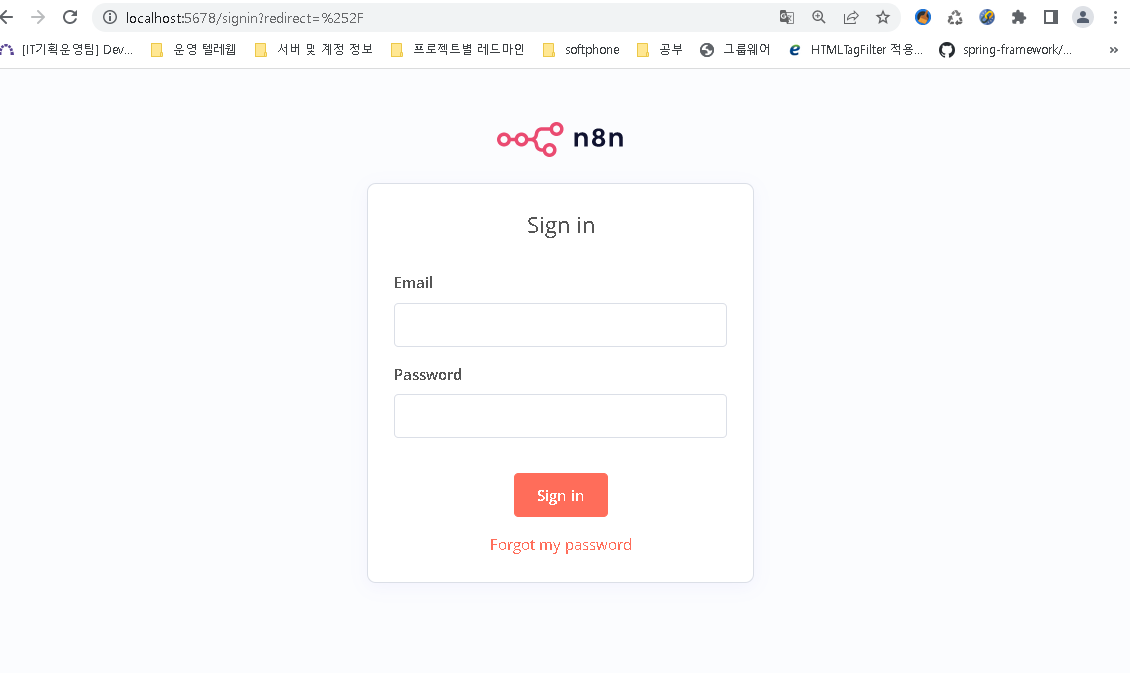2. n8n을 start하면 localhost:5678, 5678포트로 프로세스 접근이 가능하다.