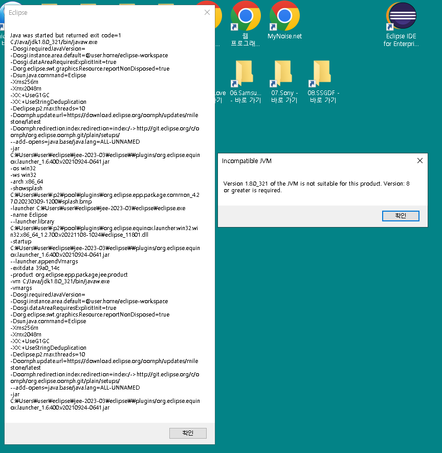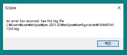 다음 이클립스 버전을 설치 후 실행하였더니 에러가 발생하였다.
