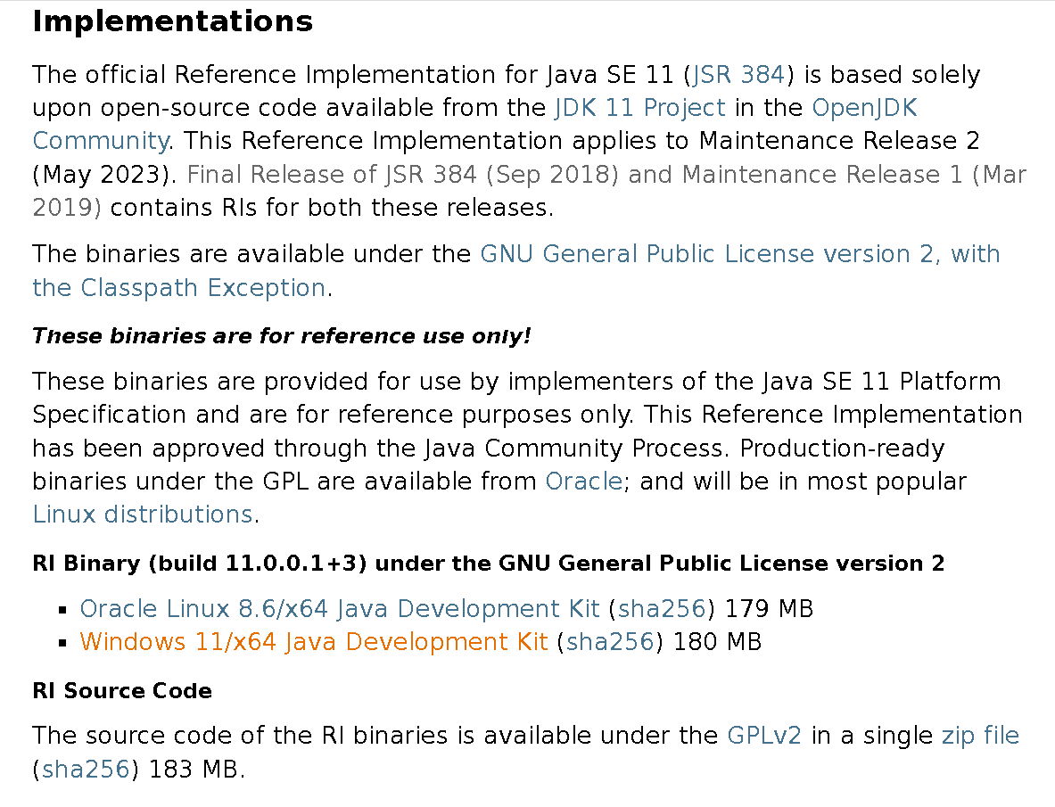 Java Platform, Standard Edition 11 Reference Implementations