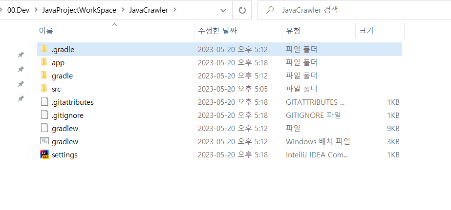 그레이들 관련 파일들이 생겼다.