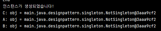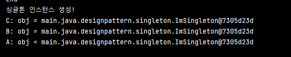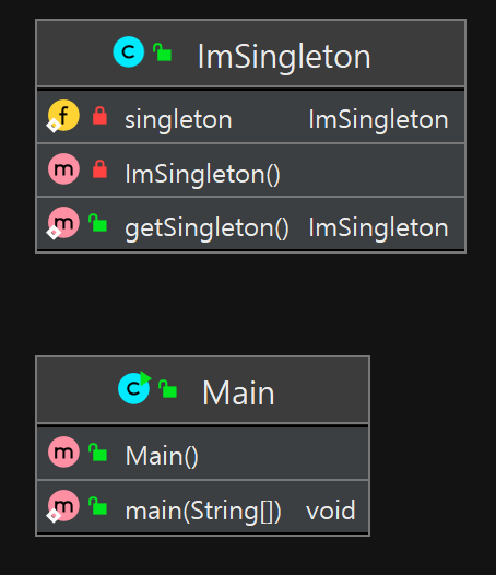 // ImSingleton is3 = new ImSingleton(); // private하여 new 생성자 접근 불가