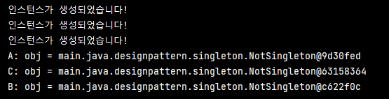System.out.println("싱글톤 인스턴스 생성!");