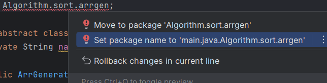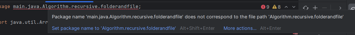 Package name 'main.java.Algorithm. ... ' does not correspond to the file path 'Algorithm....'