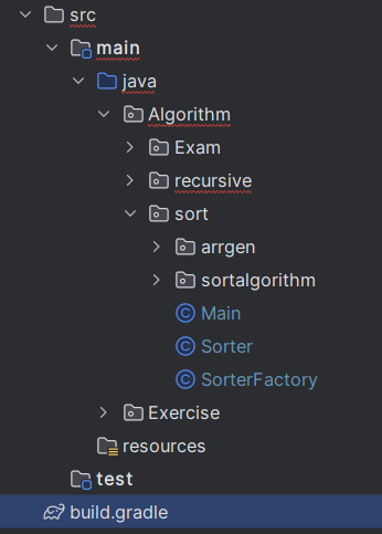디렉터리 구조는 다음과 같다. 알고리즘 연습용으로 생성한 프로젝트이다.