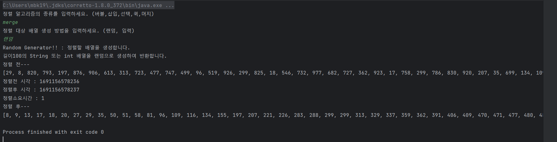 System.out.println("정렬후 시각 : " + (end = System.currentTimeMillis()));