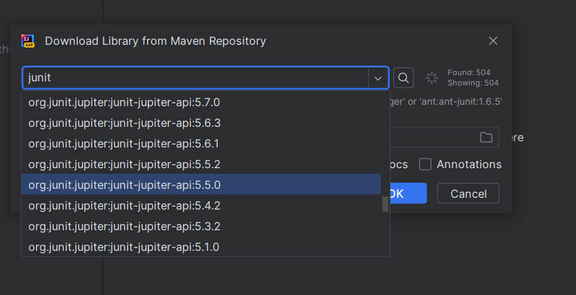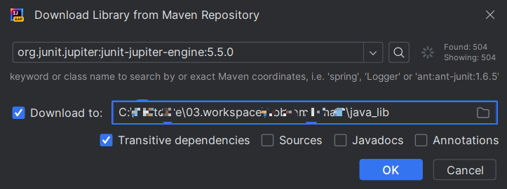 빌드도구의 의존을 통하지 않고 라이브러리를 추가하려면 jar 파일을 다운로드하여 라이브러리 기본 디렉터리에 추가해주어야 한다. 하지만 인텔리제이의 기능을 사용하면 빌드 도구를 통하지 않더라도 손쉽게 메이븐 리포지토리에서 라이브러리를 다운로드하여 프로젝트에 추가할 수 있다.