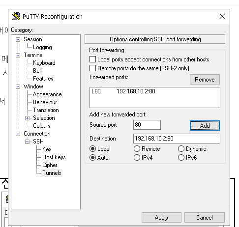 1. putty ssh 터널링
