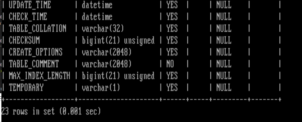 => desc information_schema.tables 로 확인