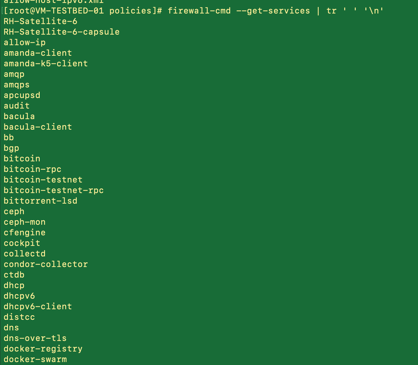 #firewall-cmd --get-services | tr ' ' '\n'