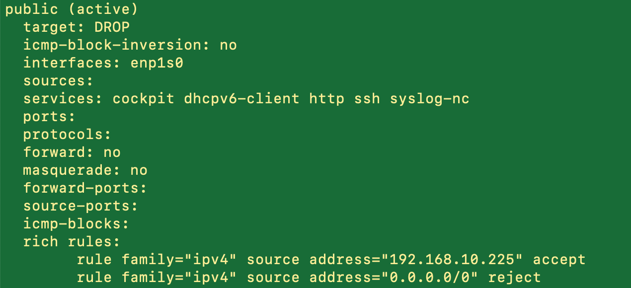 #firewall-cmd --list-all