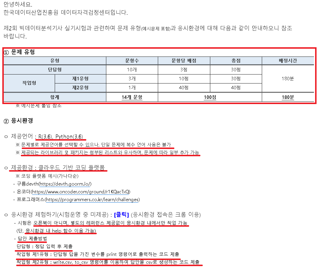 공지사항에 첨부된 파일입니다. 빅데이터 분석기사 실기시험 응시가이드를 확인할 수 있습니다.