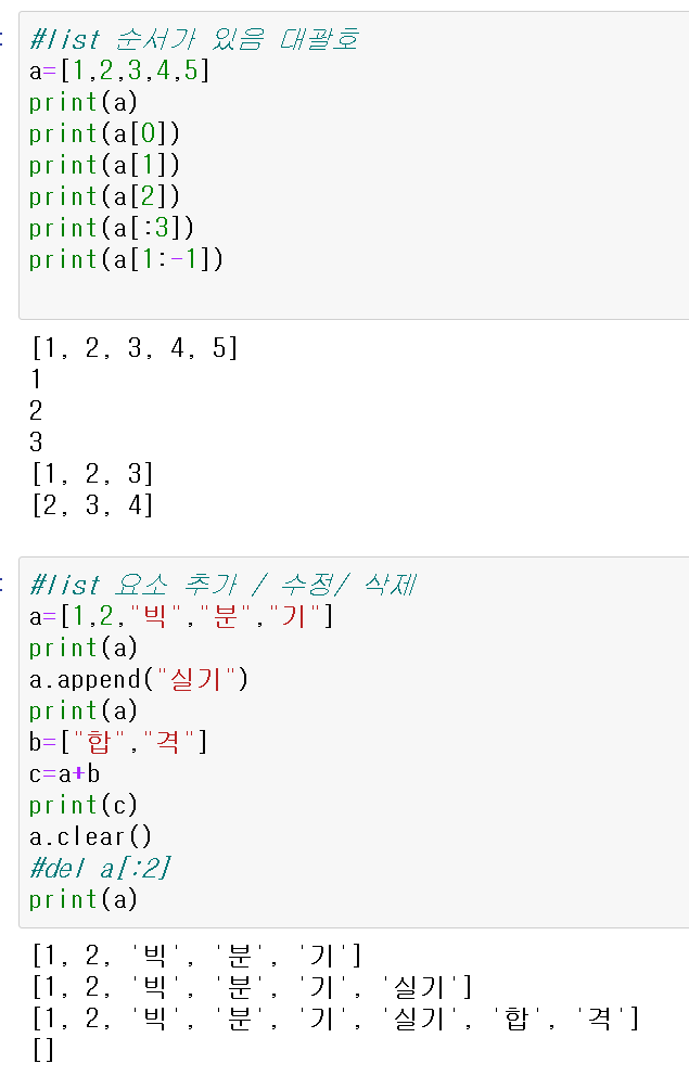 #list는 순서가 있는 자료의 집합. 추가, 삭제, list 끼리의 합치기 가능.
