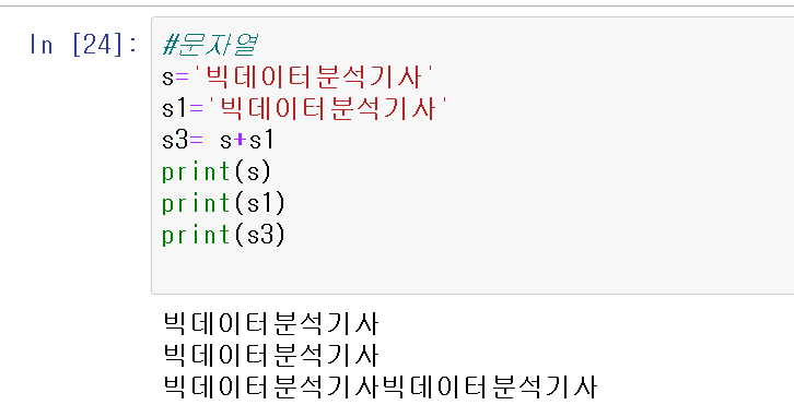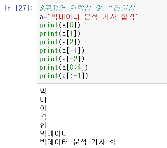 print(A[0:3]) 을하면 0부터 3개의 문자, 빅분기가 출력됨