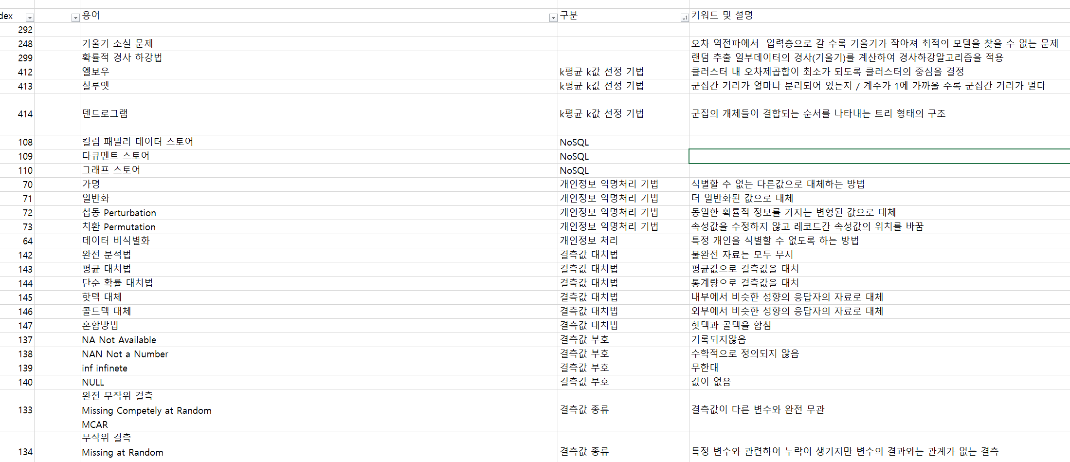3) 엑셀에 정리한 필답형 용어 약 500개 키워드 보고 용어 생각하는 식으로 복습 3회